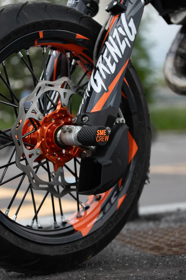 Optimisez le refroidissement des freins de votre KTM, Husqvarna ou GasGas avec cette écope de refroidissement axial FATTY au design plus volumineux pour un flux d’air maximal. Elle permet de réduire efficacement la température et limiter l’usure, idéale pour une utilisation supermotard intensive. Fabriquée en impression 3D avec une finition propre et résistante, elle offre une solution légère et durable. Installation simple sans matériel supplémentaire, compatible avec les montages équipés de disques 260 mm ou 320 mm et étriers OEM ou Motomaster.